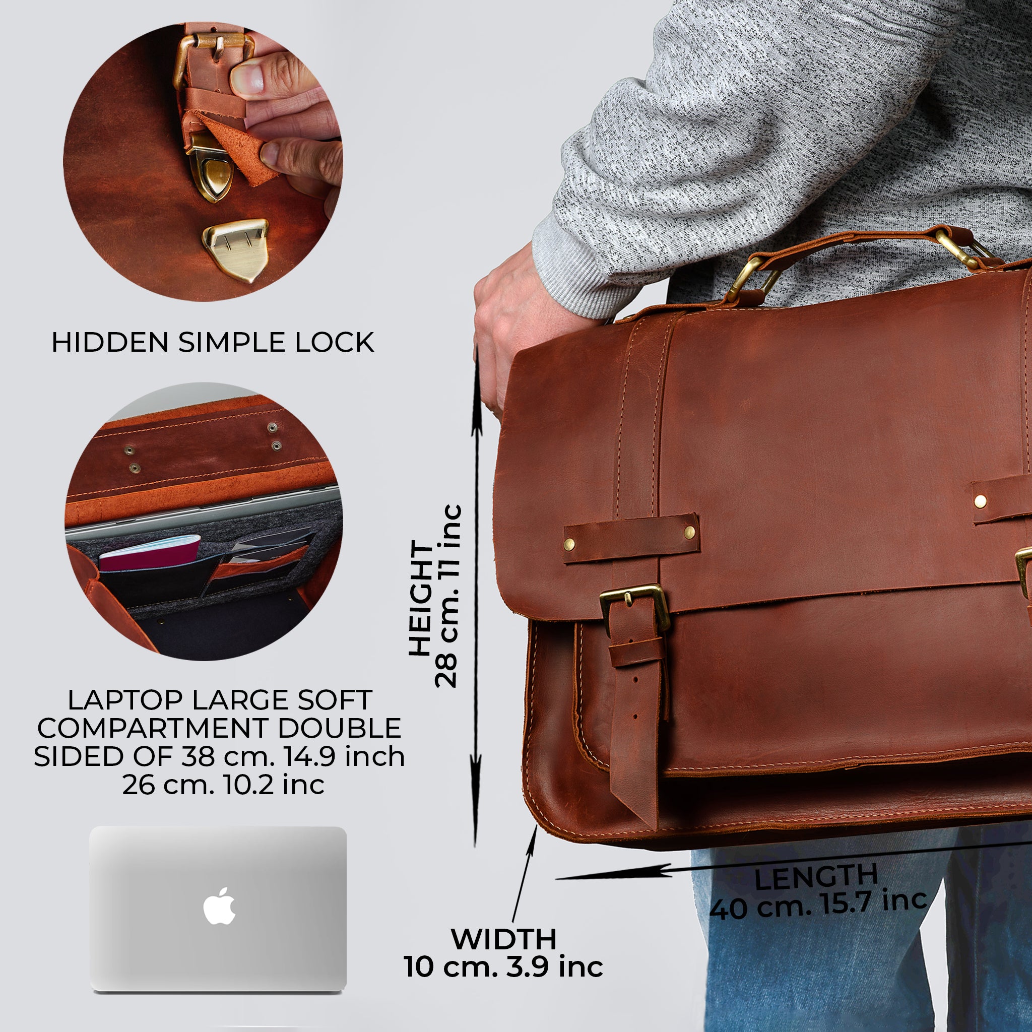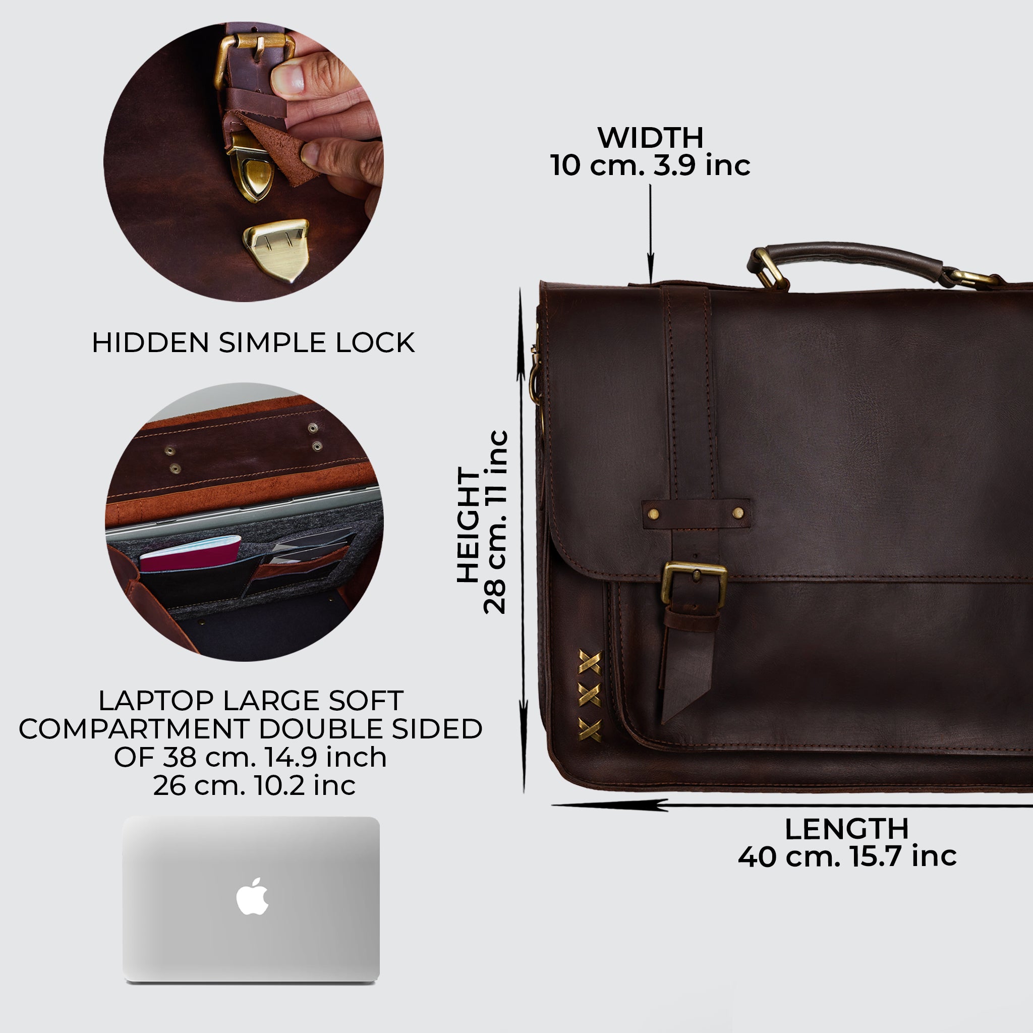 Crafted from premium quality, strong full-grain leather, the "Business Forester" doesn't just carry your essentials; it does so with an unmatched level of durability and style. Whether you prefer to wear it as a shoulder bag or carry it by hand, this briefcase adapts to your needs and style with ease.